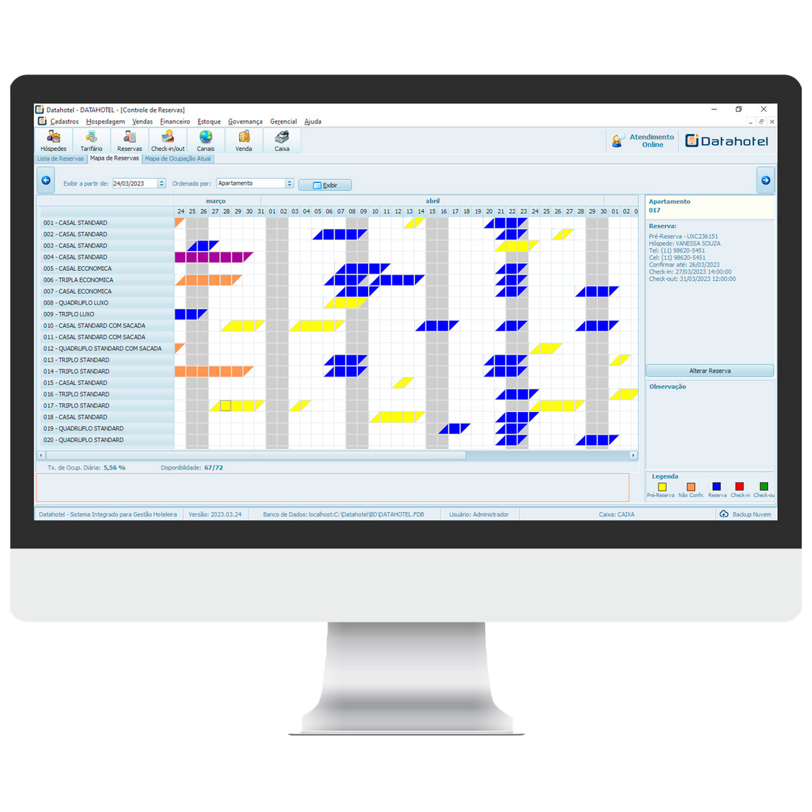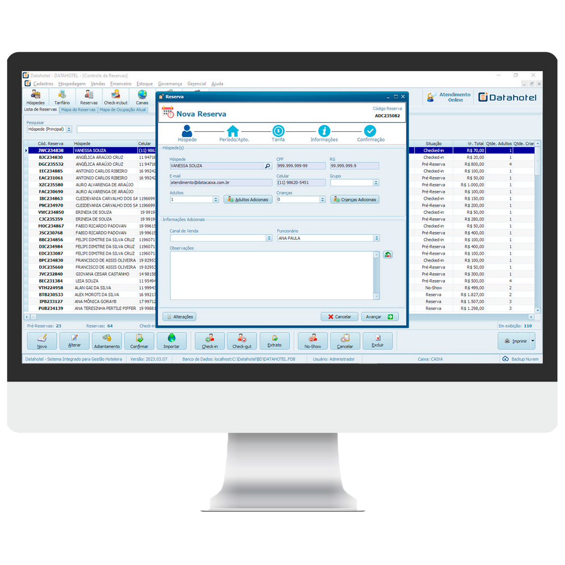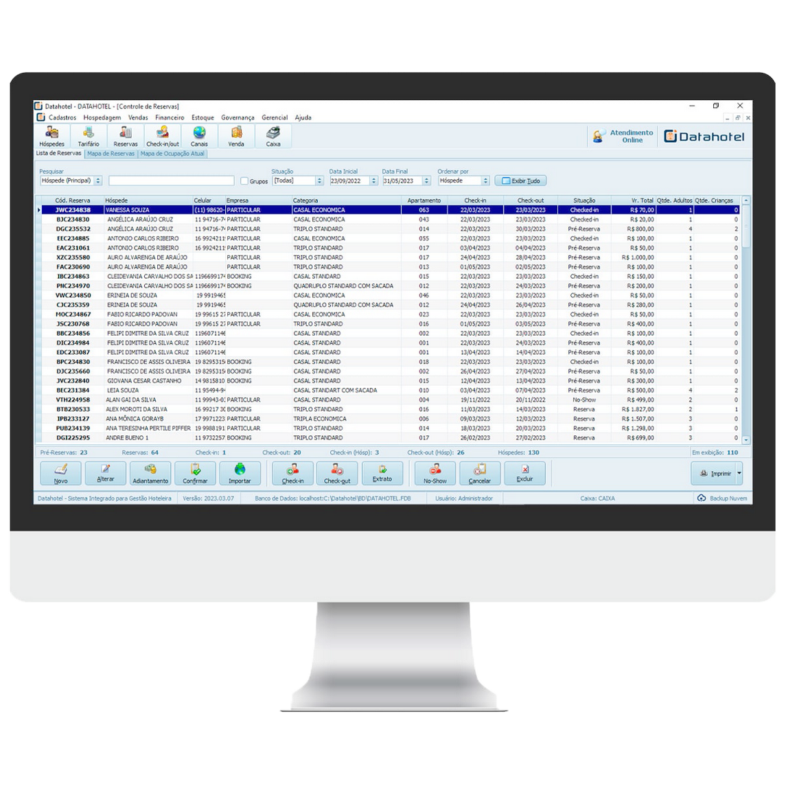Controle de Reservas por Grupos ou Individuais (Controle de Pré-Reservas, Confirmação de Reservas, Check-in, Check-out, Walk-in).